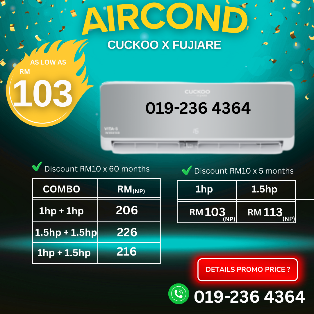 Promosi Combo Aircond Cuckoo! Jimat RM600! Contact Now For Info!